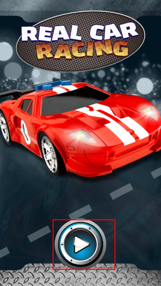 1、進入游戲界面,看到紅色賽車和下方藍色開始按鈕,點擊該按鈕,即可開啟賽車競速之旅,體驗駕駛樂趣。