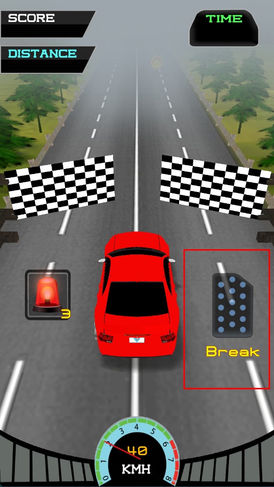 3、行駛在賽道上,點擊右側Break按鍵,可讓賽車減速剎車,避免碰撞,同時留意速度表,控制車速。