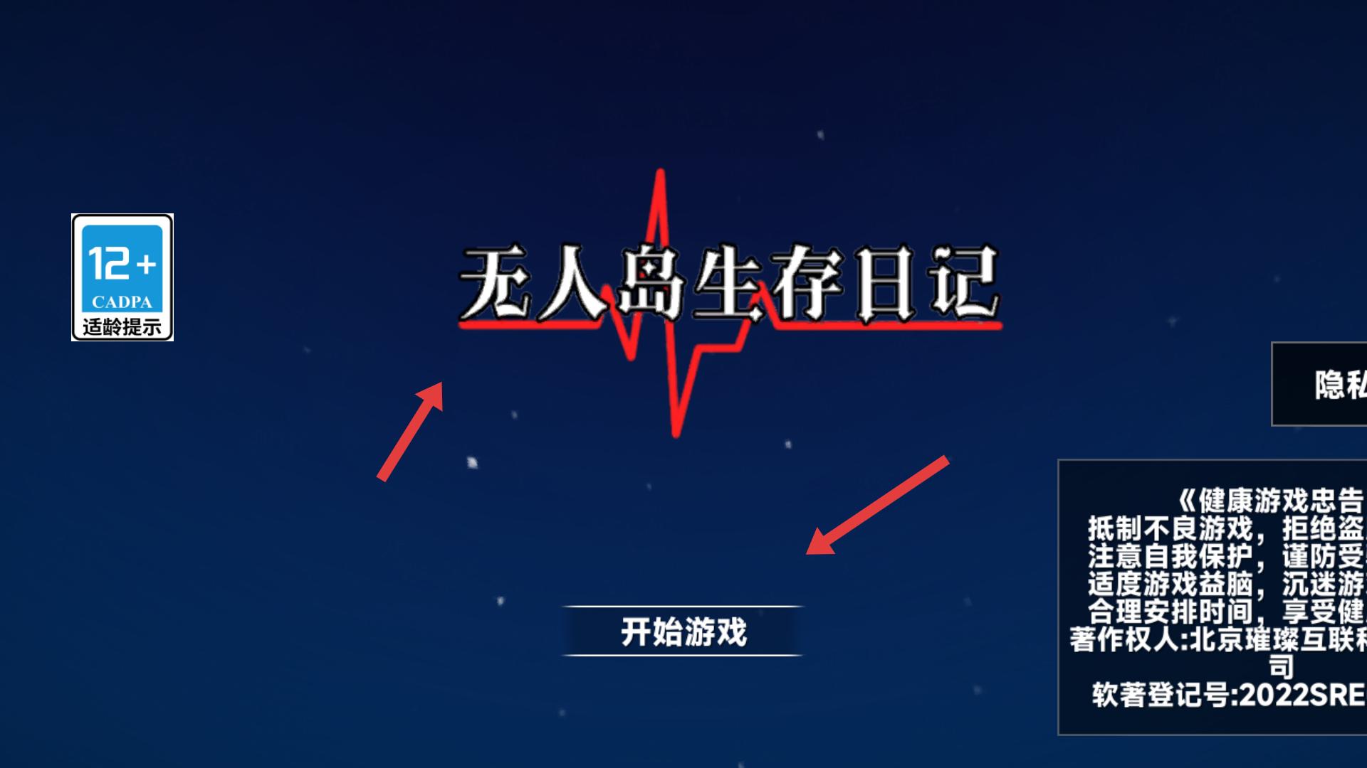 1、進入游戲,看到無人島生存日記標題,點擊開始游戲,開啟在無人島的生存挑戰,開啟一段獨特的冒險。