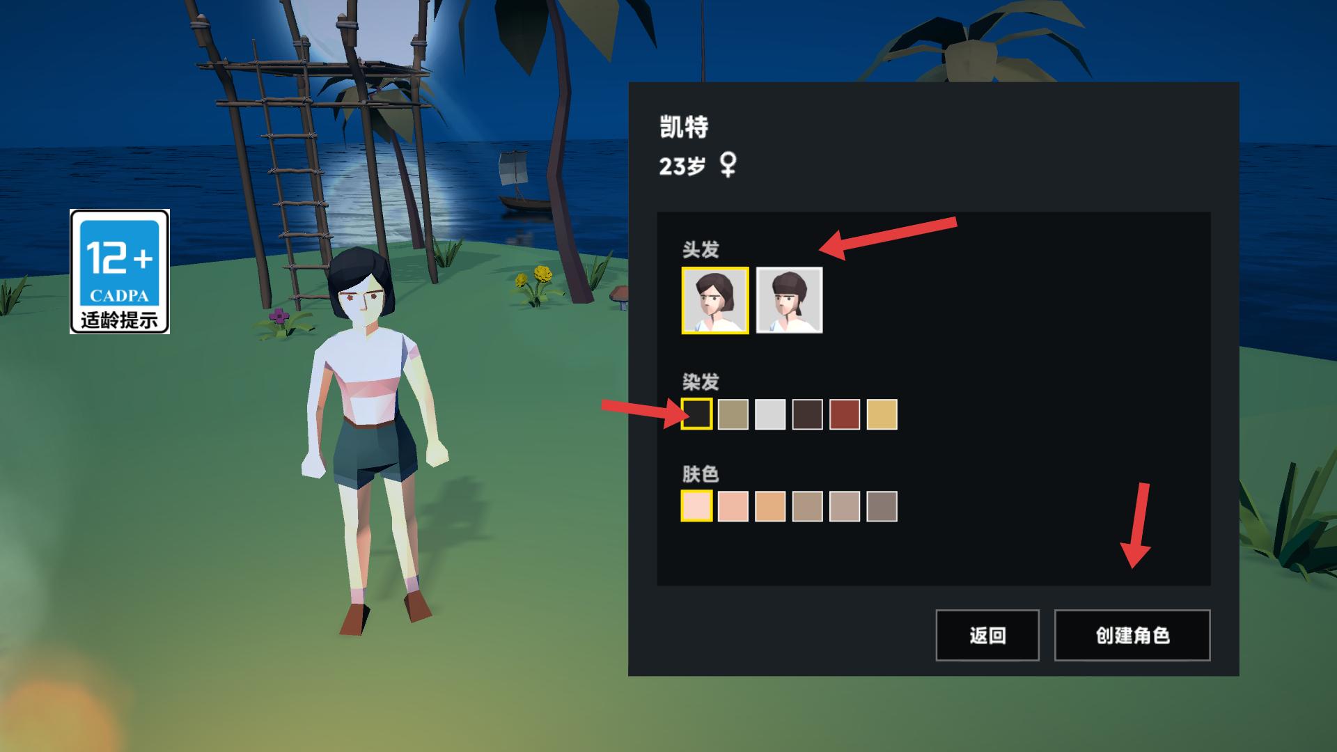 3、創建角色時,可選擇頭發樣式,染發顏色,膚色等,設置好后點擊創建角色,完成角色定制。