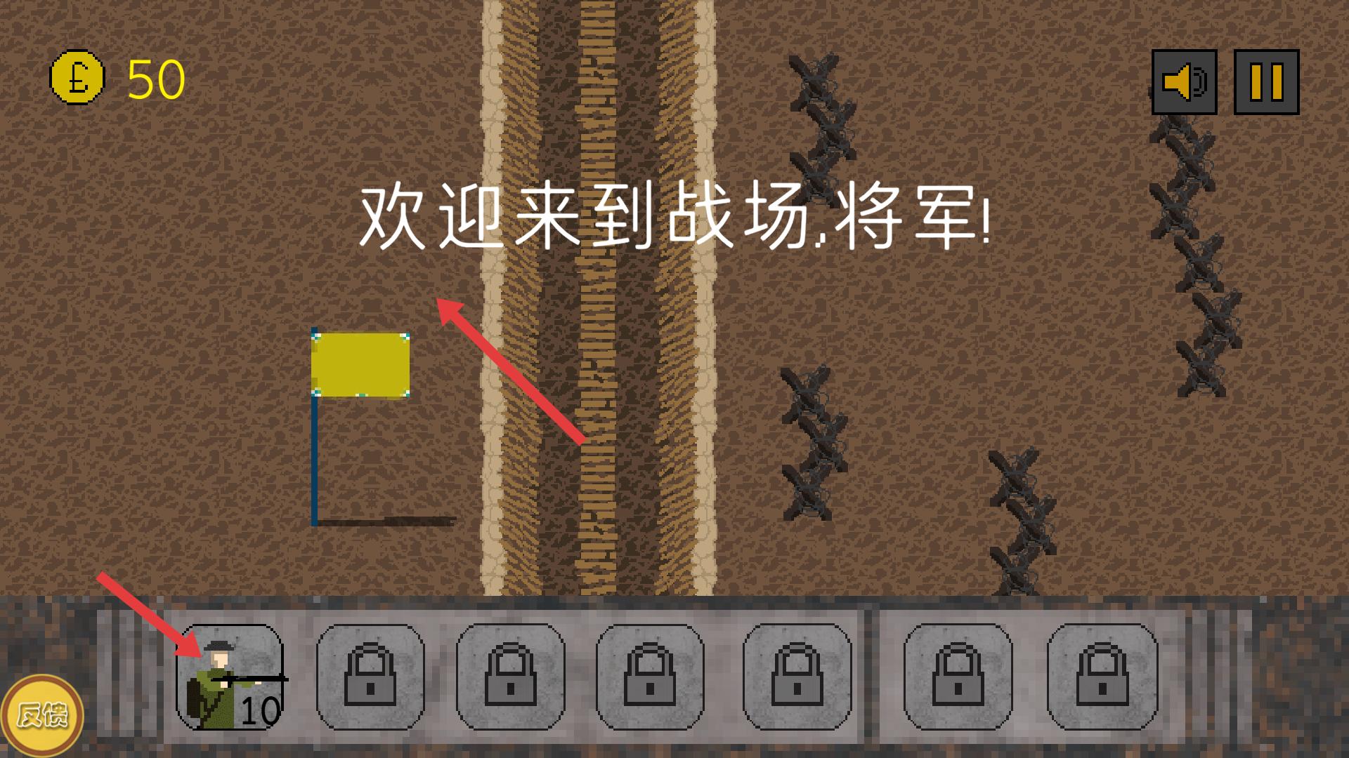 4、進入戰斗場景,看到歡迎來到戰場,將軍提示,可使用士兵等作戰單位,到戰場中進行戰斗,爭取勝利。