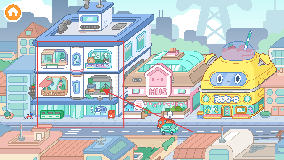 2、在小鎮場景中選擇感興趣的房間建筑進入,比如居民樓,里面有不同的房間,可與房間內的物品和角色互動。