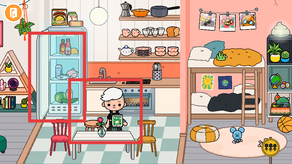 4、進入室內場景,比如廚房,可查看冰箱里的食物,與角色一起在餐桌旁互動,模擬日常的生活起居,感受小鎮的溫馨。