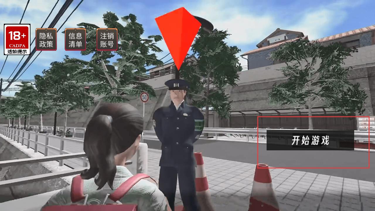 1、進入游戲,看到有警察和行人的場景,點擊開始游戲按鈕,開啟在城鎮中的偵查冒險之旅。