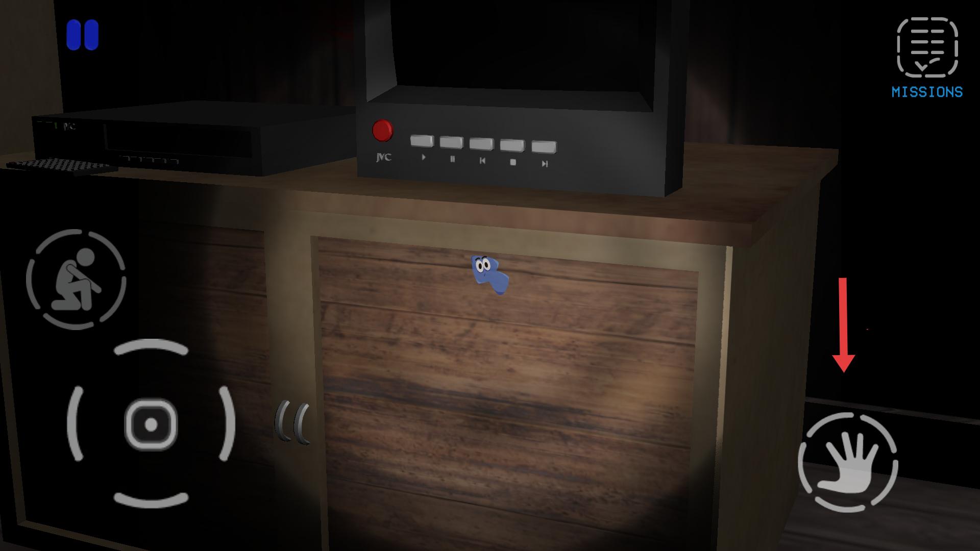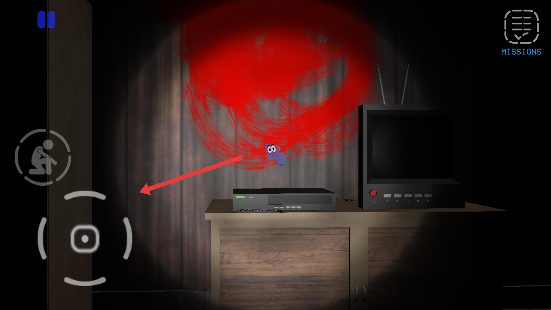 1、操控左側的移動按鈕,控制角色在房間內移動,探索不同區域,尋找關鍵物品或線索。
