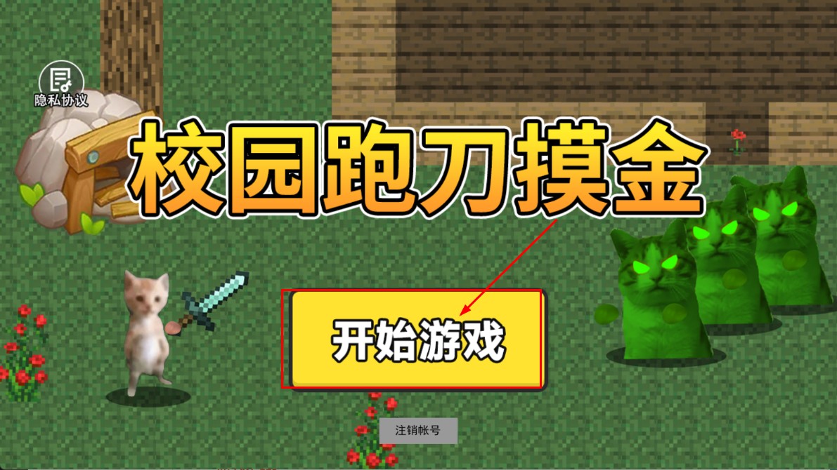 1、在帶有校園跑刀摸金字樣的啟動界面,點擊開始游戲按鈕,即可進入校園摸金的游戲場景,開啟冒險。