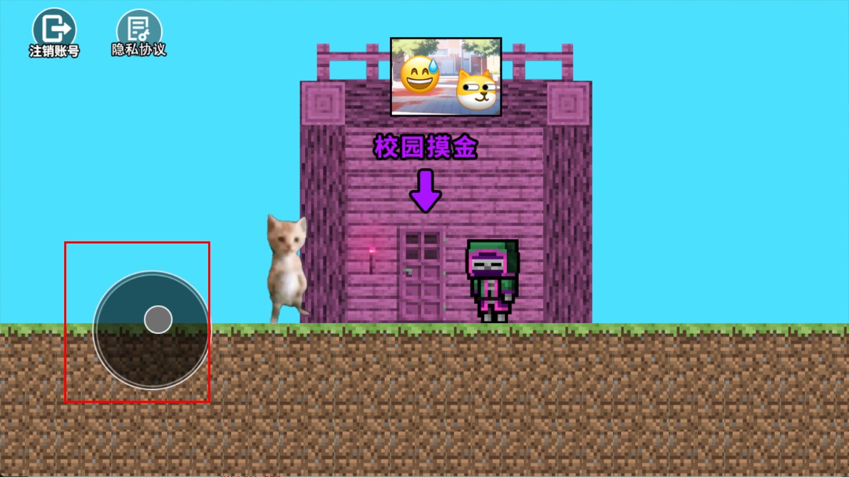 2、進入場景后,操控左側虛擬搖桿,能控制角色在校園區域移動,靠近標有校園摸金的建筑目標位置。