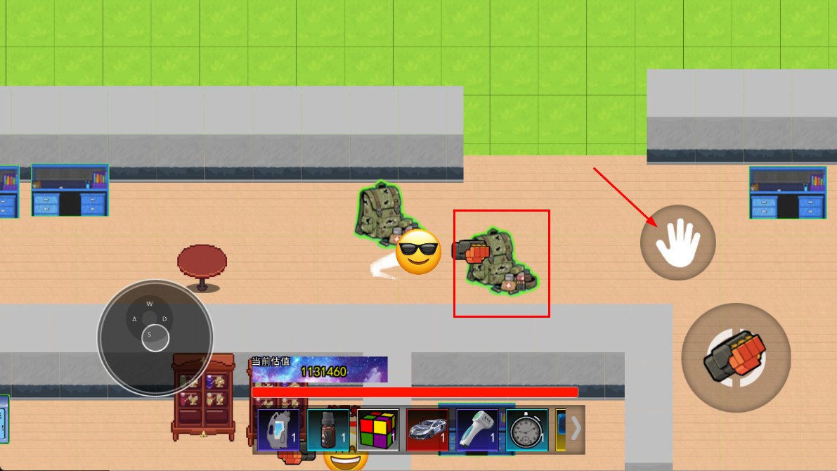 4、來到建筑內部等場景,遇到背包等可收集物品時,點擊手掌交互按鈕,能對物品進行操作,獲取其中的資源或道具。