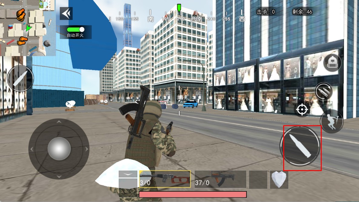 3、戰斗時點擊右側子彈圖標射擊,結合自動開火與武器切換,可高效消滅敵人。