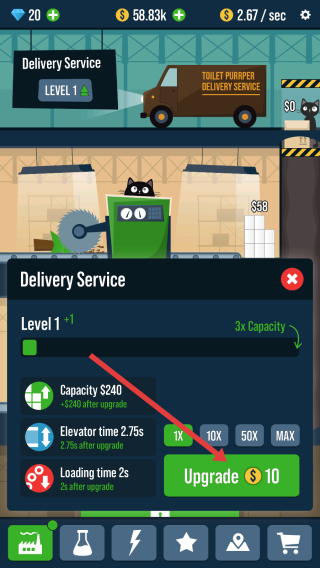 4、點擊配送服務等相關選項,會彈出升級界面,可花費資金升級配送服務,升級后能提升配送容量、電梯速度等。