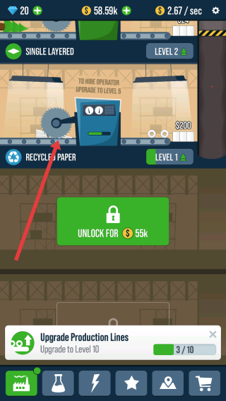 3、能看到RECYCLEPAPER相關設備,設備運作可回收紙張,提升生產效率,同時也有需要解鎖的區域,需花費資金。