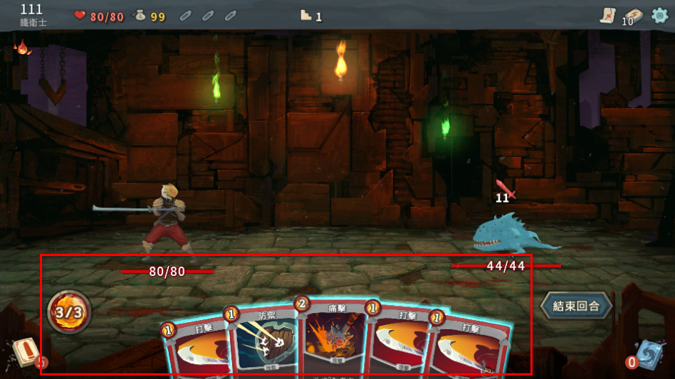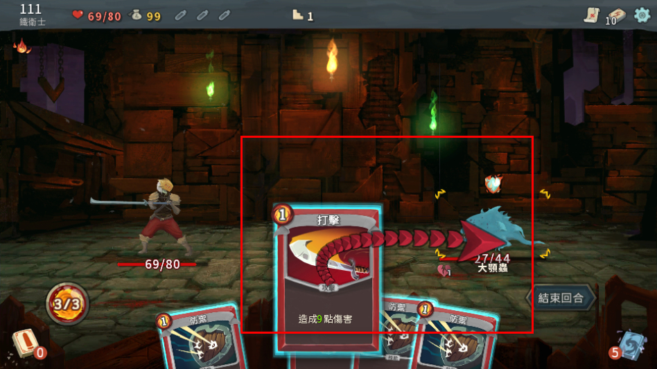 2、選擇攻擊類卡牌,能對敵人造成傷害,不斷用攻擊卡牌攻擊,消耗敵人的生命值,讓敵人血量逐漸減少直至被擊敗。
