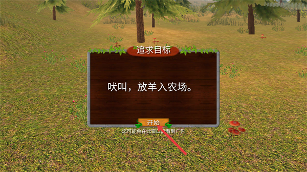 2、進入游戲后會彈出提示框,顯示追求目標吠叫放羊入農場,明確任務后點擊開始按鈕,便可以正式開啟放羊的任務挑戰。