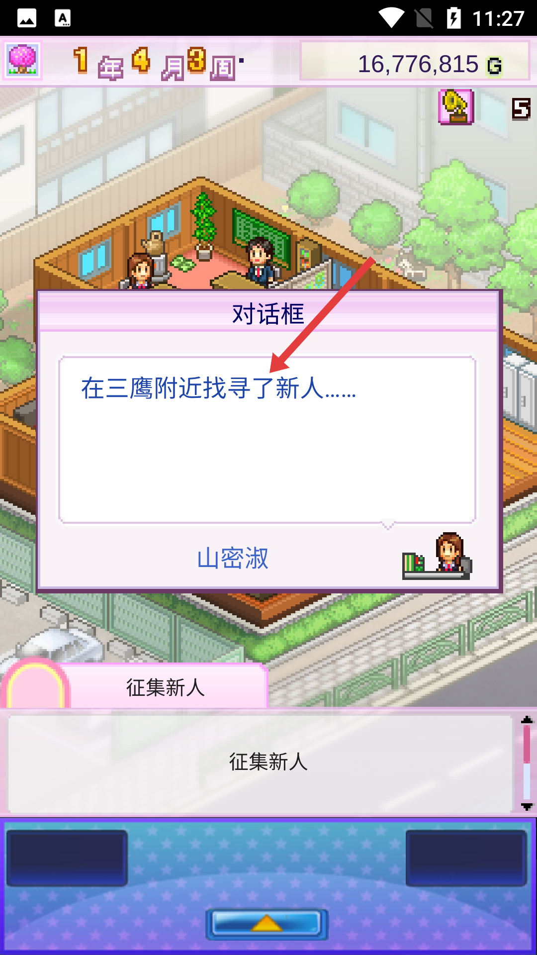 3、確定征集地點后,等待游戲提示在該地點找尋到新人,此時會出現相關對話框,告知新人發掘情況。