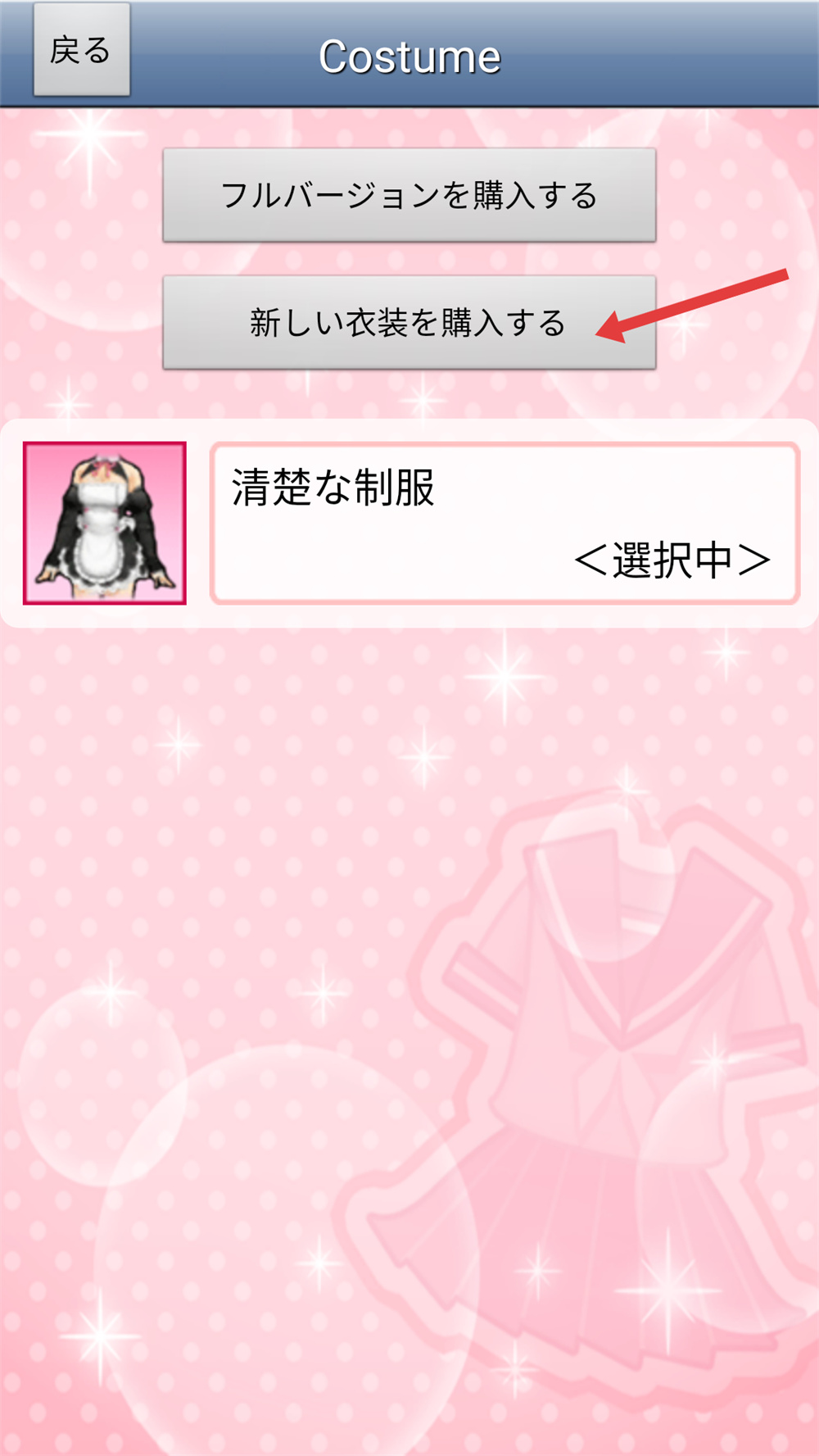 1、進入游戲后,找到Costume服裝相關按鈕并點擊,進入服裝界面,準備為角色挑選或購買服裝。