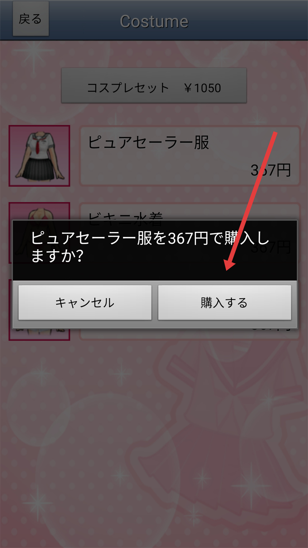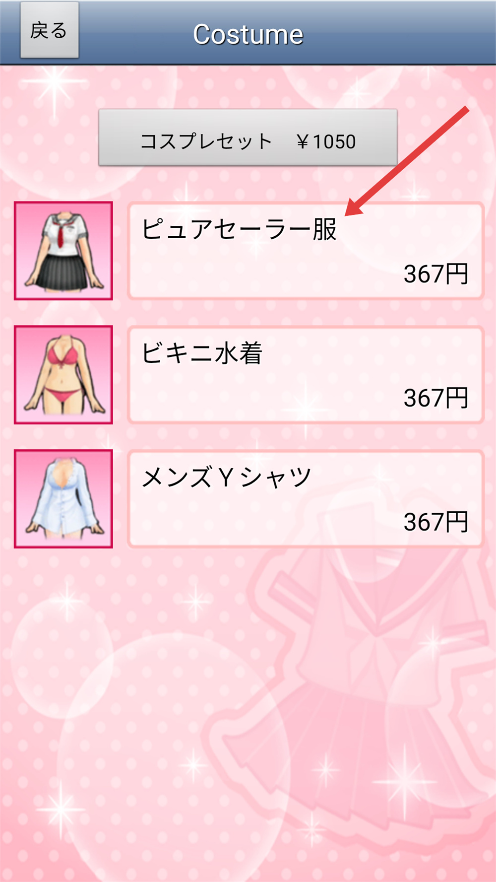 3、在服裝購買列表里,瀏覽不同的服裝,選擇自己想要購買的那一款,點擊該服裝對應的區域。
