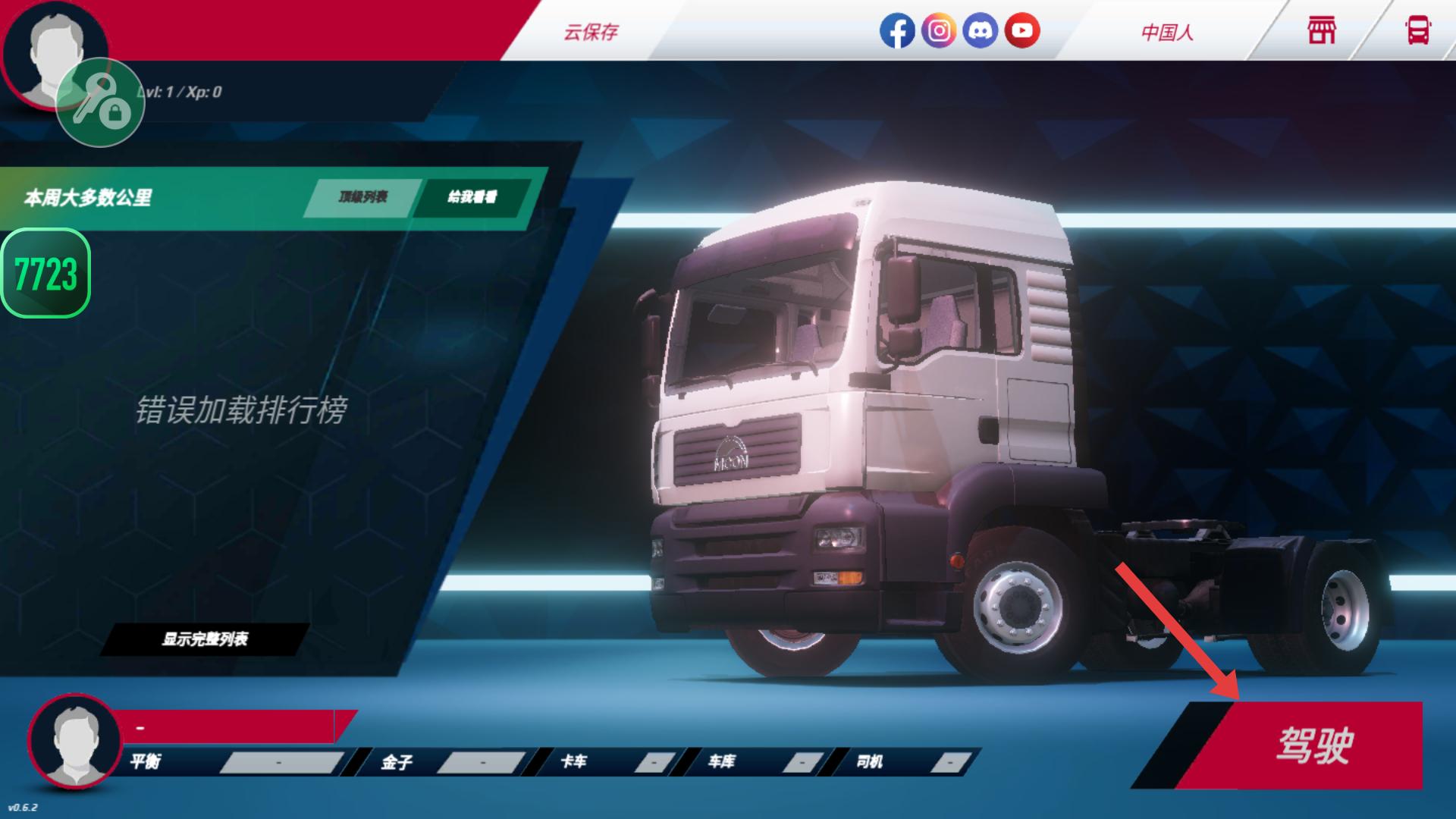 1、在游戲主界面,點擊右下角紅色的駕駛按鈕,即可進入卡車駕駛相關的游戲環節,開啟卡車操作體驗。