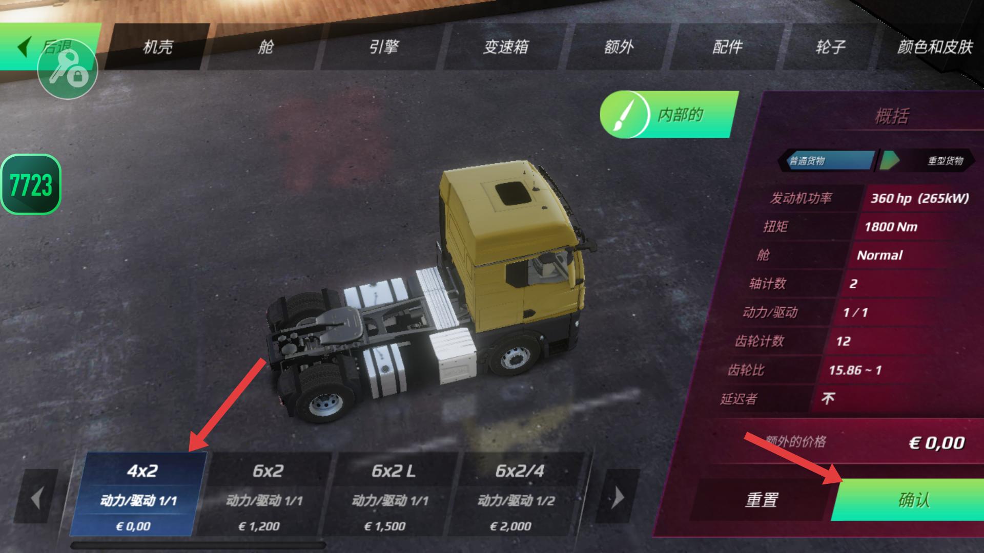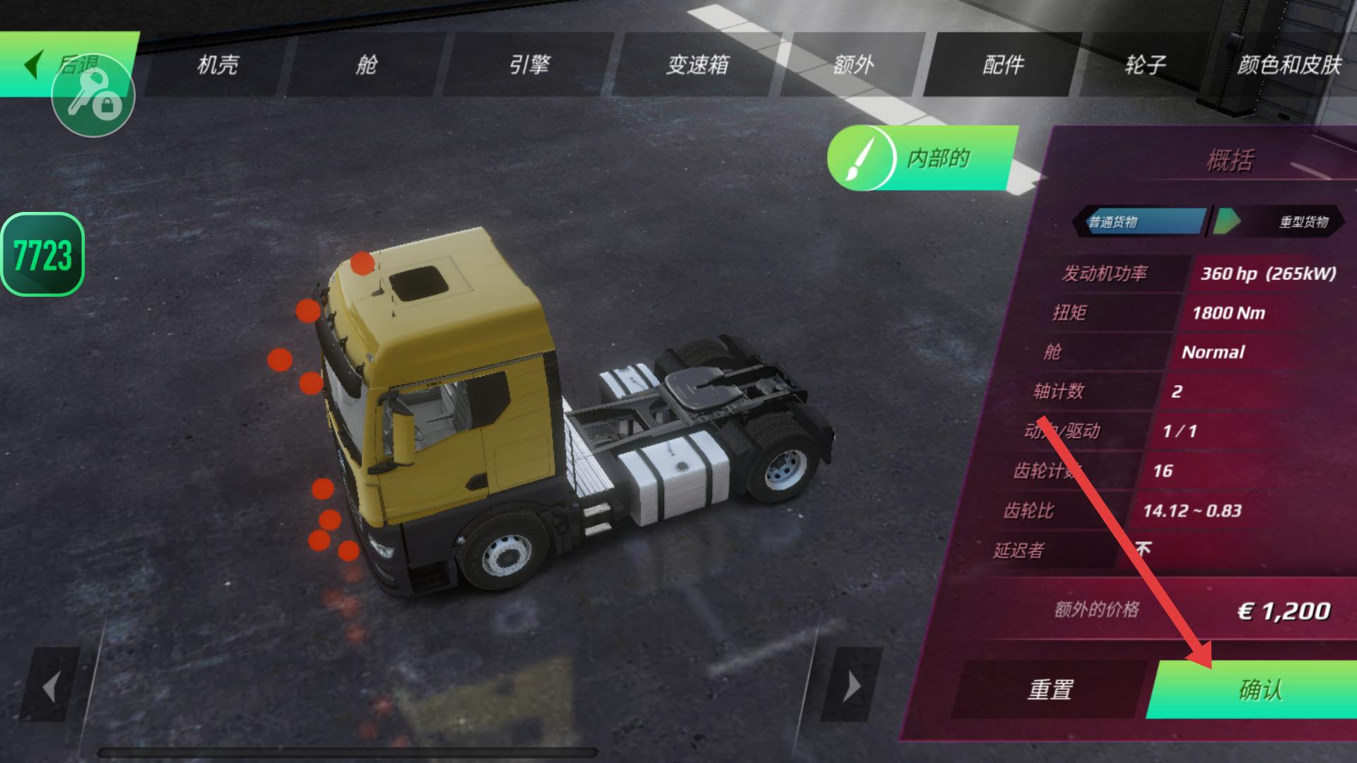 4、完成動力驅動等定制后,再次點擊右下角的確認按鈕,確認所有定制內容,使卡車以定制后的狀態進入游戲。