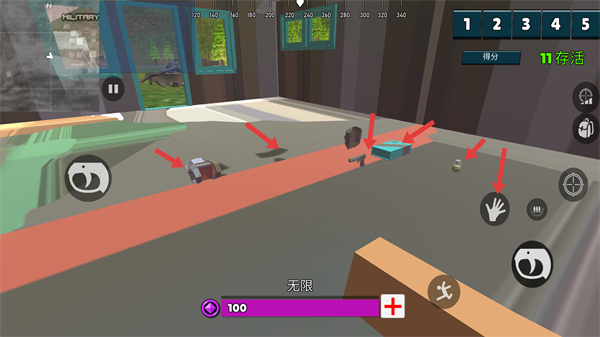 2、進入建筑后優先拾取武器,彈藥和補給箱,這些物品能提升戰斗能力,同時留意周圍防范敵人突襲。