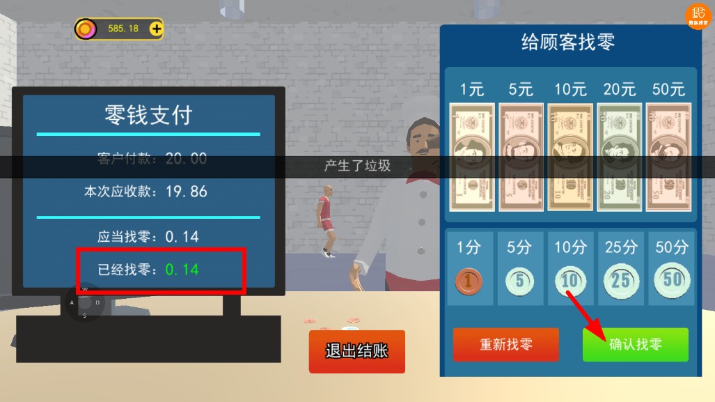 4、零錢支付核對已經找零0.14后,點擊確認找零,提升滿意度助力收益增長。