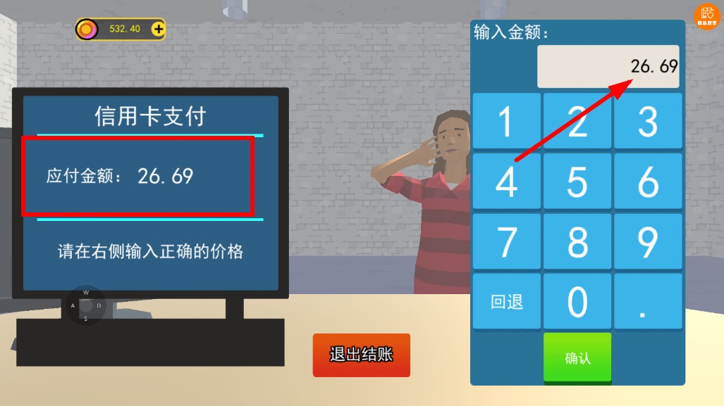 3、信用卡支付時,按應付金額26.69在右側輸入框準確輸入,保障收款積累資金。