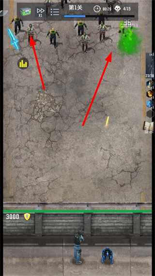 1、在第1關抵御怪物進攻,利用初始武器和陣容攻擊怪物,推進關卡進度,為后續技能選擇和戰力提升做好準備。