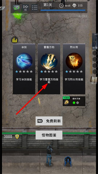 2、選擇雷霆萬鈞等技能,提升雷電傷害,優化防御能力,為對抗更多怪物提供強大助力。