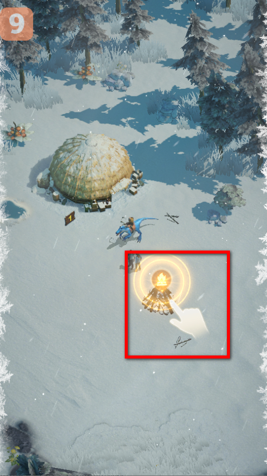 3、戰斗結束回到場景,點擊篝火相關標識,可進行互動,能烹飪食材煮熟后使用能恢復體力,為后續冒險做準備。