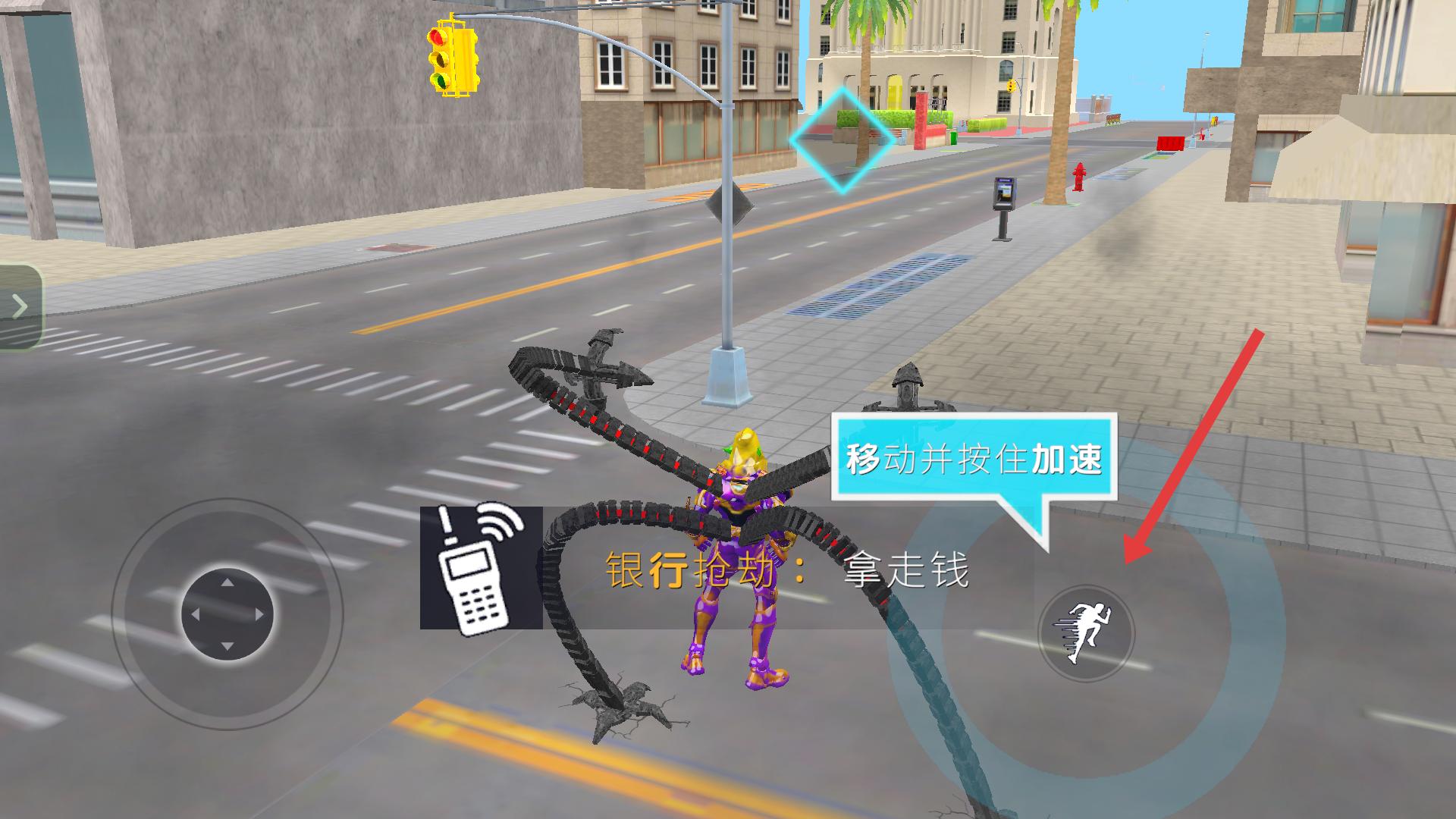 1、操控角色在城市街道移動,按住加速按鈕,快速前往任務地點,推進游戲進程。