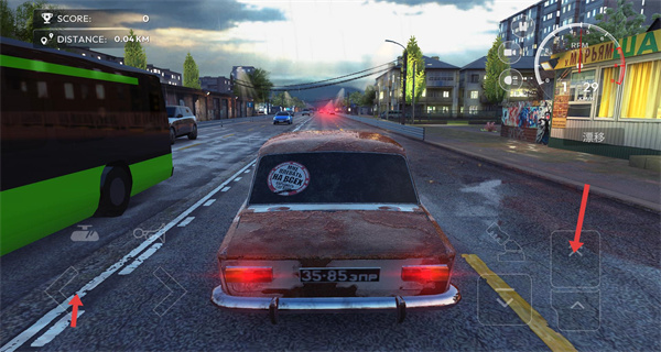 4、進入駕駛界面左側按鍵控制方向右側按鍵控制油門,操控車輛在道路行駛注意躲避障礙把握加速時機開啟賽車競賽。