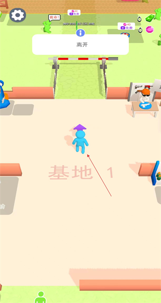 2、在游戲基地場景,角色位于基地內,界面有離開提示,操控角色移動,準備離開基地,前往任務區域。