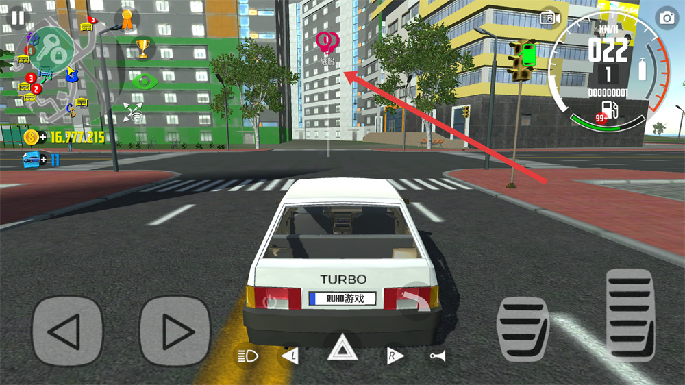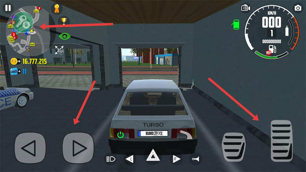 2、在駕駛場景中通過左側的方向按鈕控制車輛的轉向,右側的油門按鈕控制車輛的加速,讓車輛能夠正常行駛。