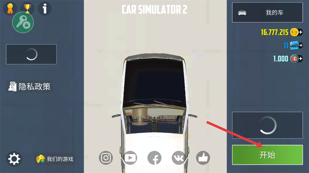 1、點擊游戲界面的開始按鈕,進入駕駛場景,此時會有車輛處于初始位置,等待操控行駛。