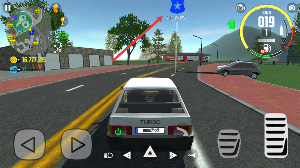2、在駕駛場景中通過左側的方向按鈕控制車輛的轉向,右側的油門按鈕控制車輛的加速,讓車輛能夠正常行駛。