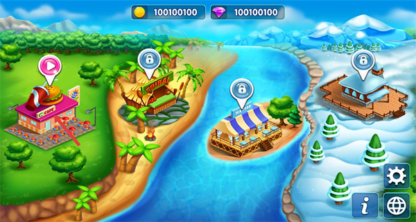 1、玩家在游戲地圖點擊帶粉色播放鍵的餐廳建筑,即可開啟一場休閑有趣的餐廳經營挑戰旅程。