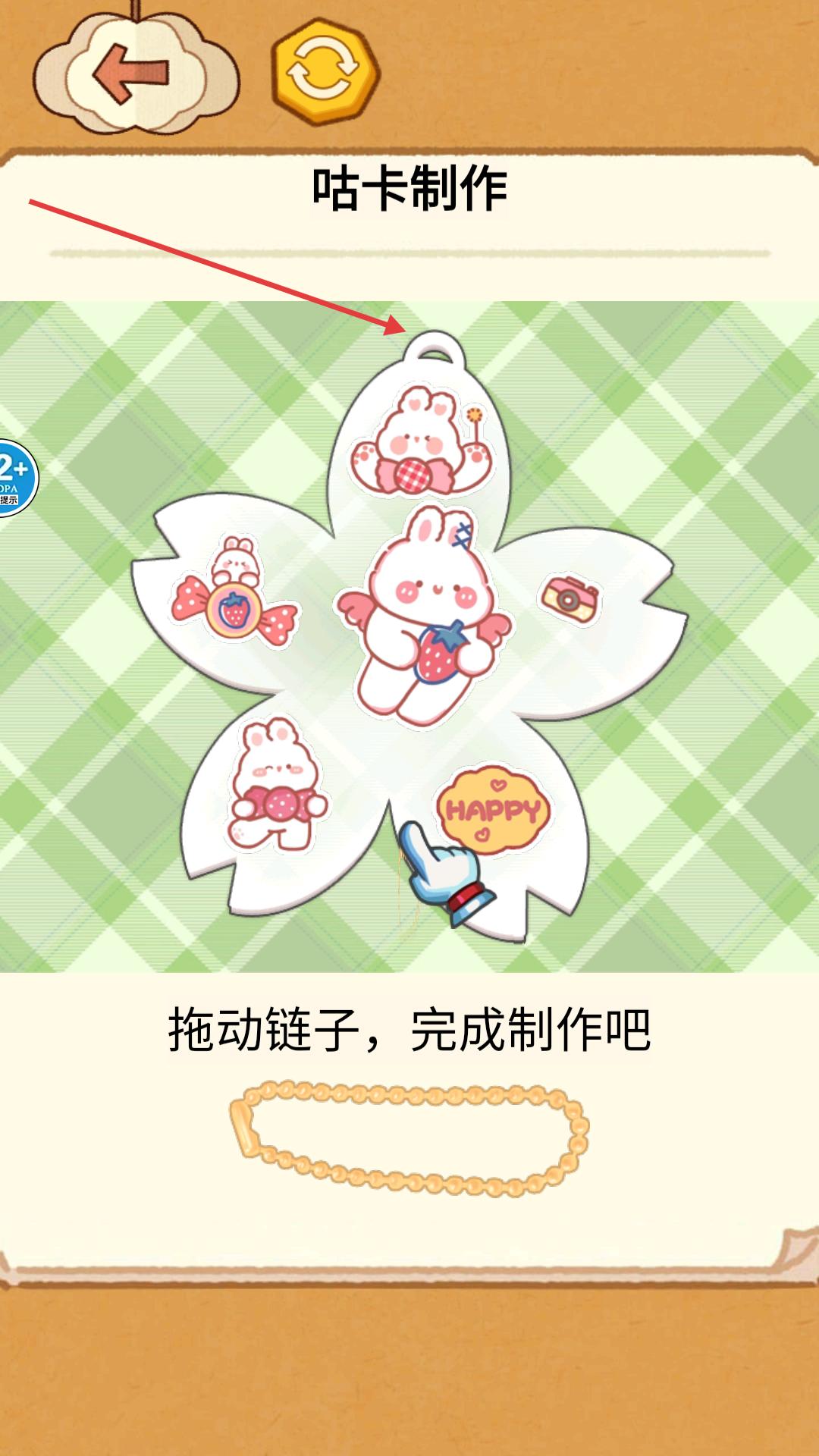 3、圖案粘貼好后,再拖動鏈子,把鏈子安裝到卡片上,完成咕卡的最后制作步驟,讓咕卡更完整。