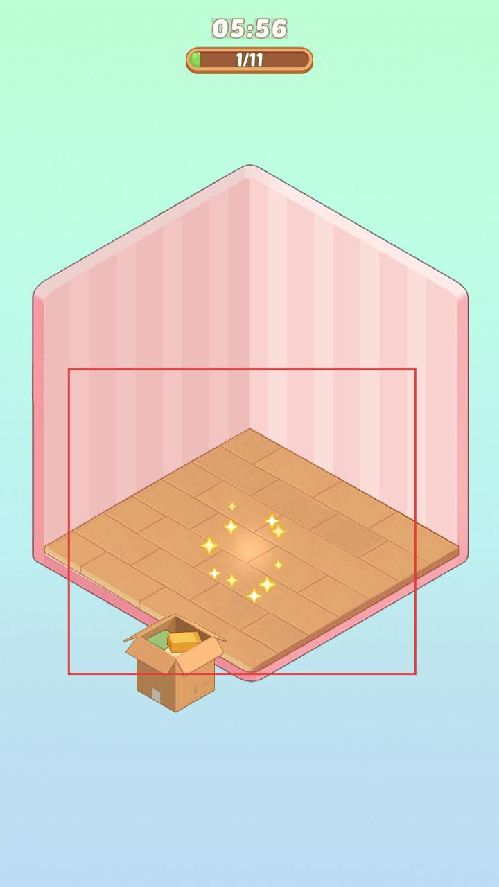 1、游戲開始,會有紙箱出現在場景中這是開啟布置的關鍵,后續要通過處理紙箱來推進房間布置進程。