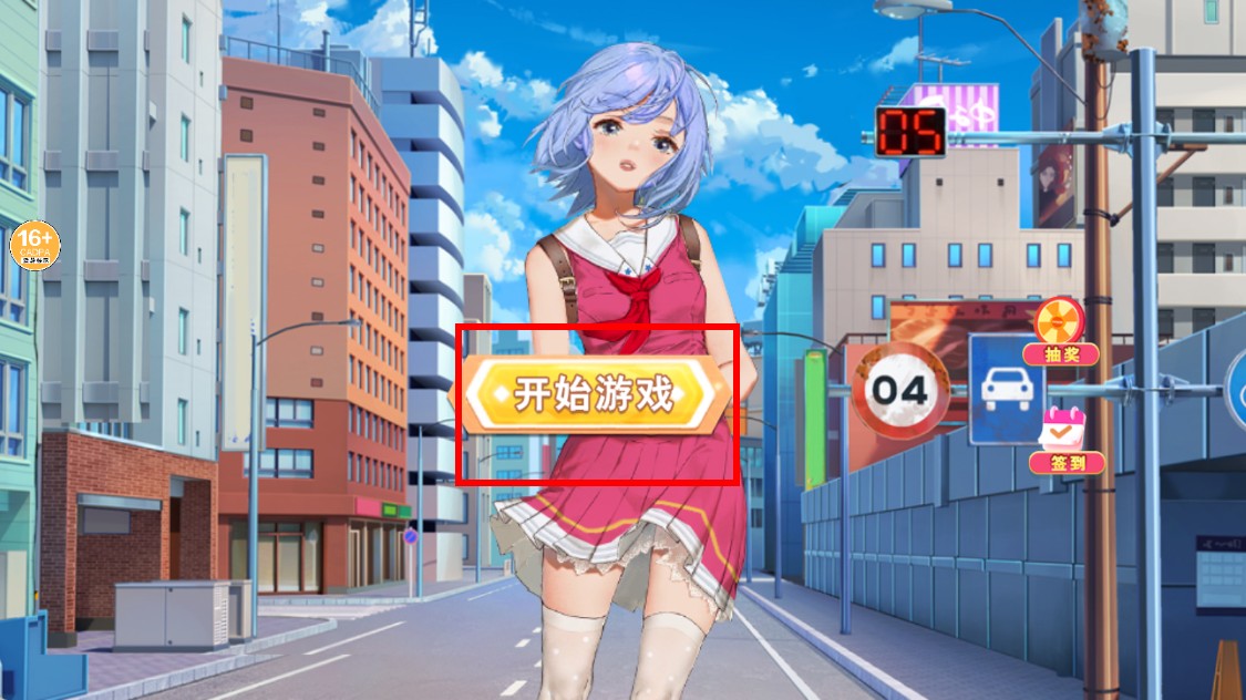 1、進入游戲會看到城市街道背景的界面,點擊開始游戲按鈕,即可開啟校園互動之旅,進入校園場景。