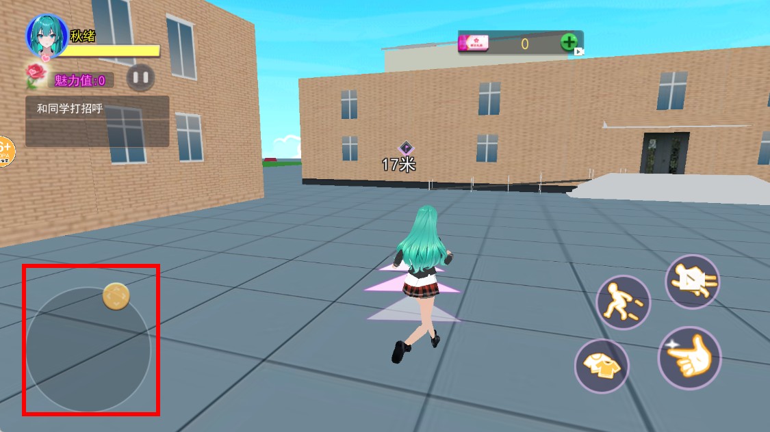 2、在校園場景,操控角色移動,可在不同區域探索,尋找金幣等物品,積累游戲資源。