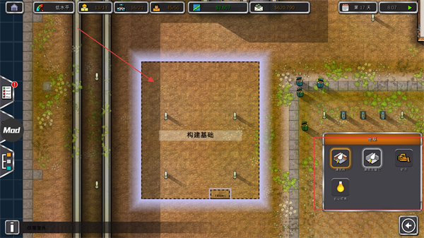 3、根據規劃點擊建造按鈕,在指定區域構建牢房、床鋪、馬桶等基礎設施,還可以建造圍墻、瞭望塔等安保設施滿足犯人的基本生活需求。