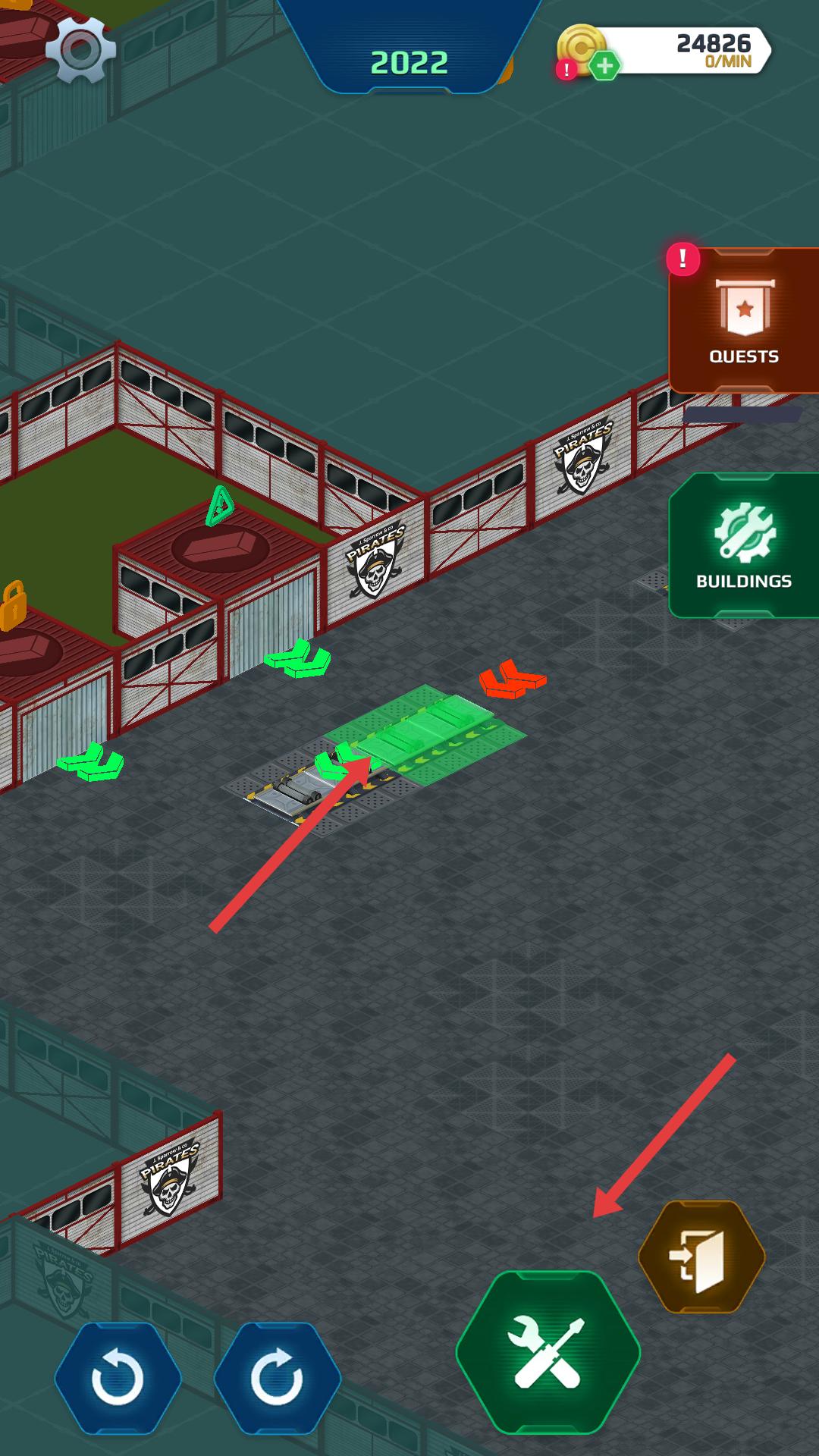 2、進入建造場景,根據指引,將綠色的建筑模塊放置到合適位置,完成車間的搭建,逐步完善工廠的建筑布局。