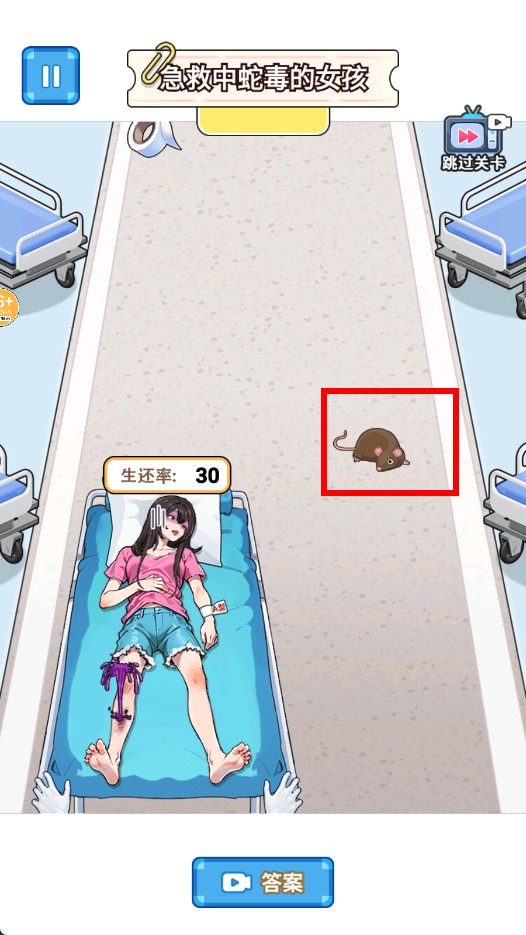 4、后續還會出現老鼠等元素將其避開,根據游戲提示和急救邏輯,繼續選擇合適的道具或進行操作,全力救治中蛇毒的女孩。