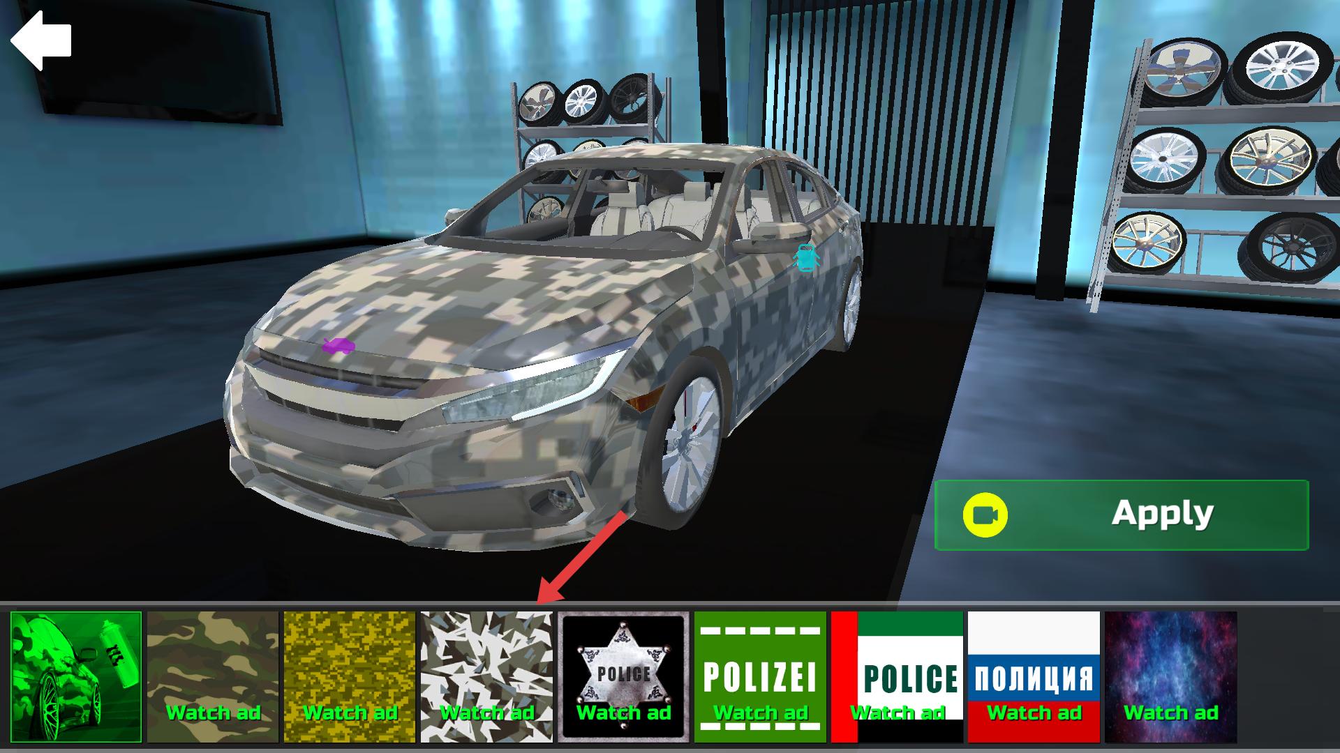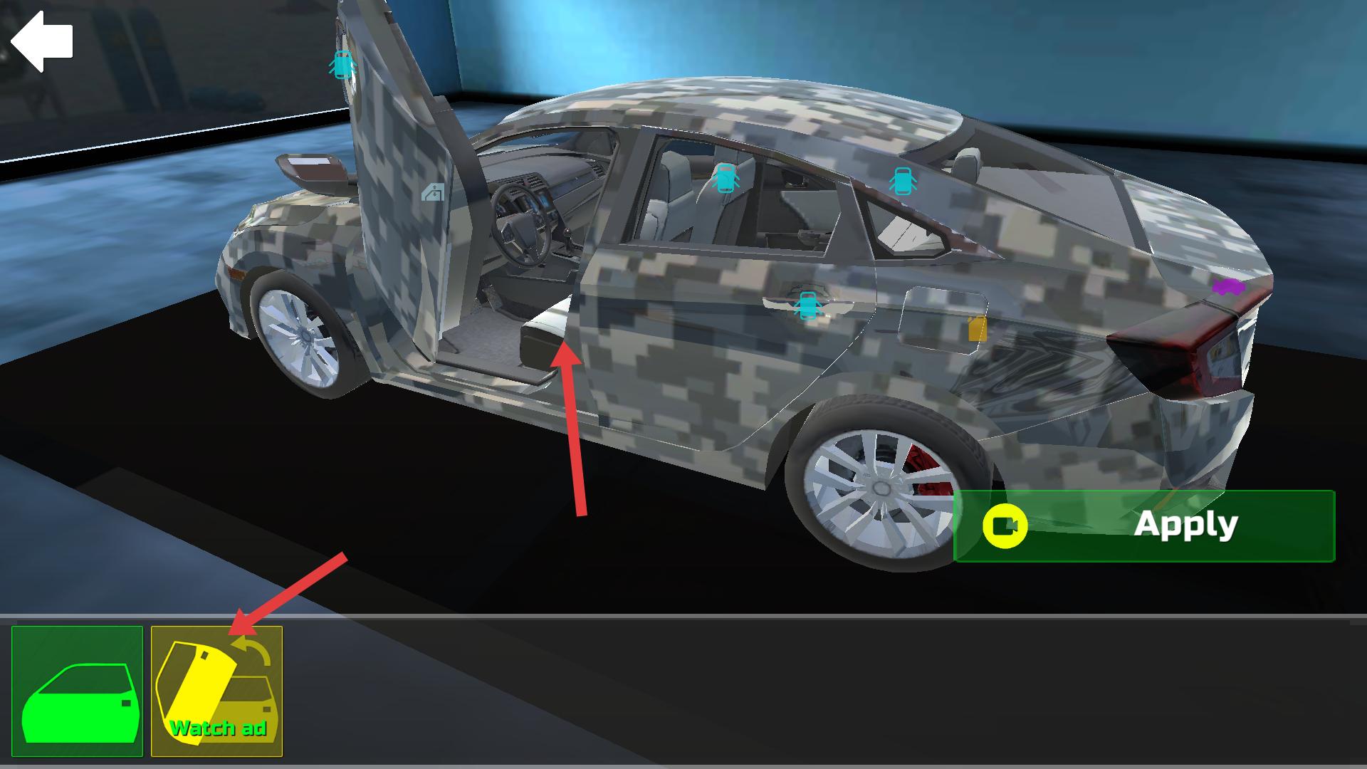 4、改裝完成后,可查看車輛效果,車門可打開,能觀察車內情況,若對改裝滿意,點擊“Apply”確認改裝,讓車輛以新外觀登場。