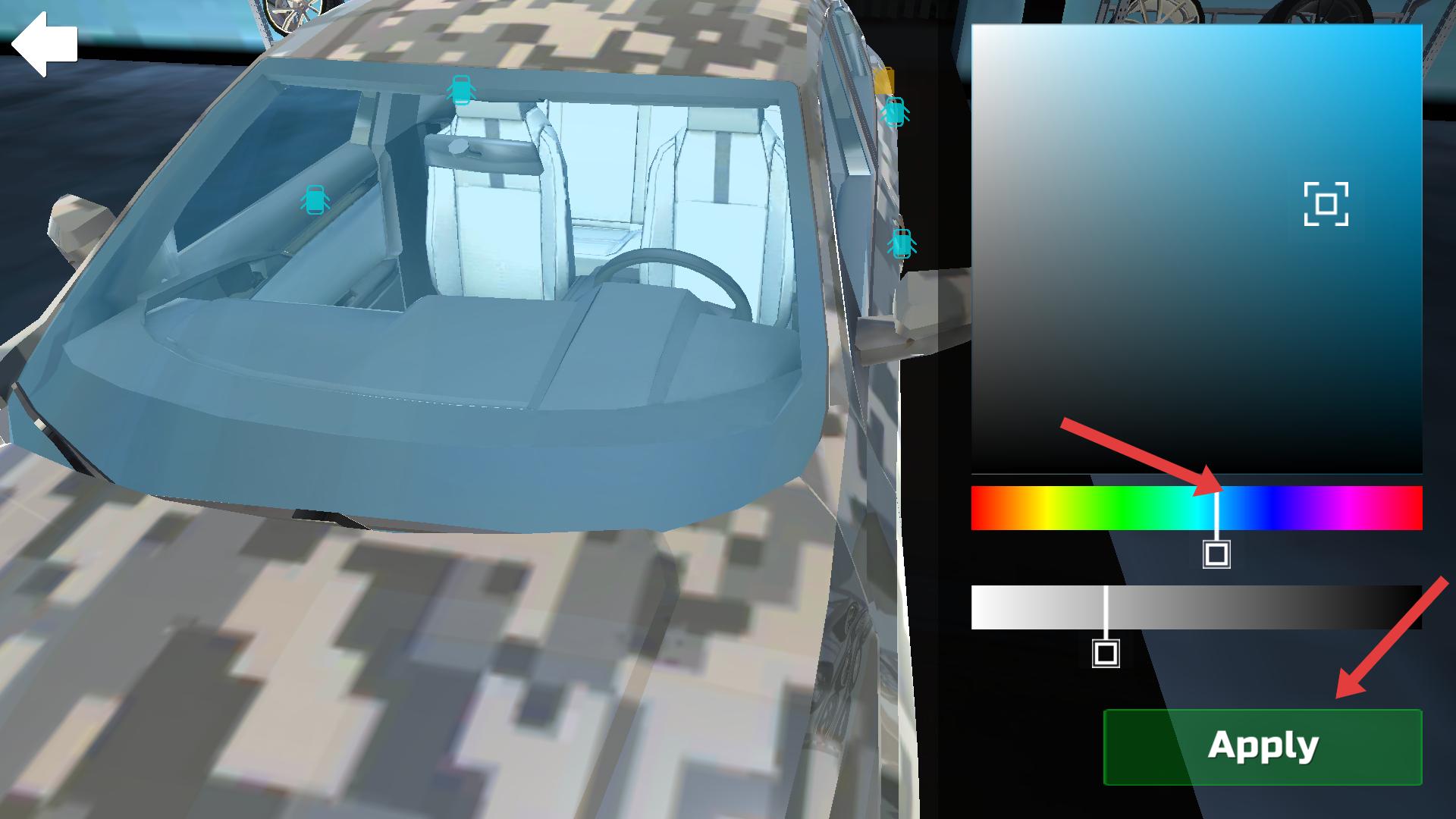 3、還能調整車輛顏色,在顏色選擇區域挑選合適顏色,設置好后點擊Apply,車輛顏色就會更改,讓車輛更具個性。