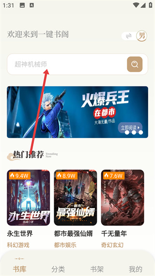 1、在應用主頁的搜索框中輸入想要查找的書籍名稱,然后點擊搜索按鈕,等待搜索結果展示出來。