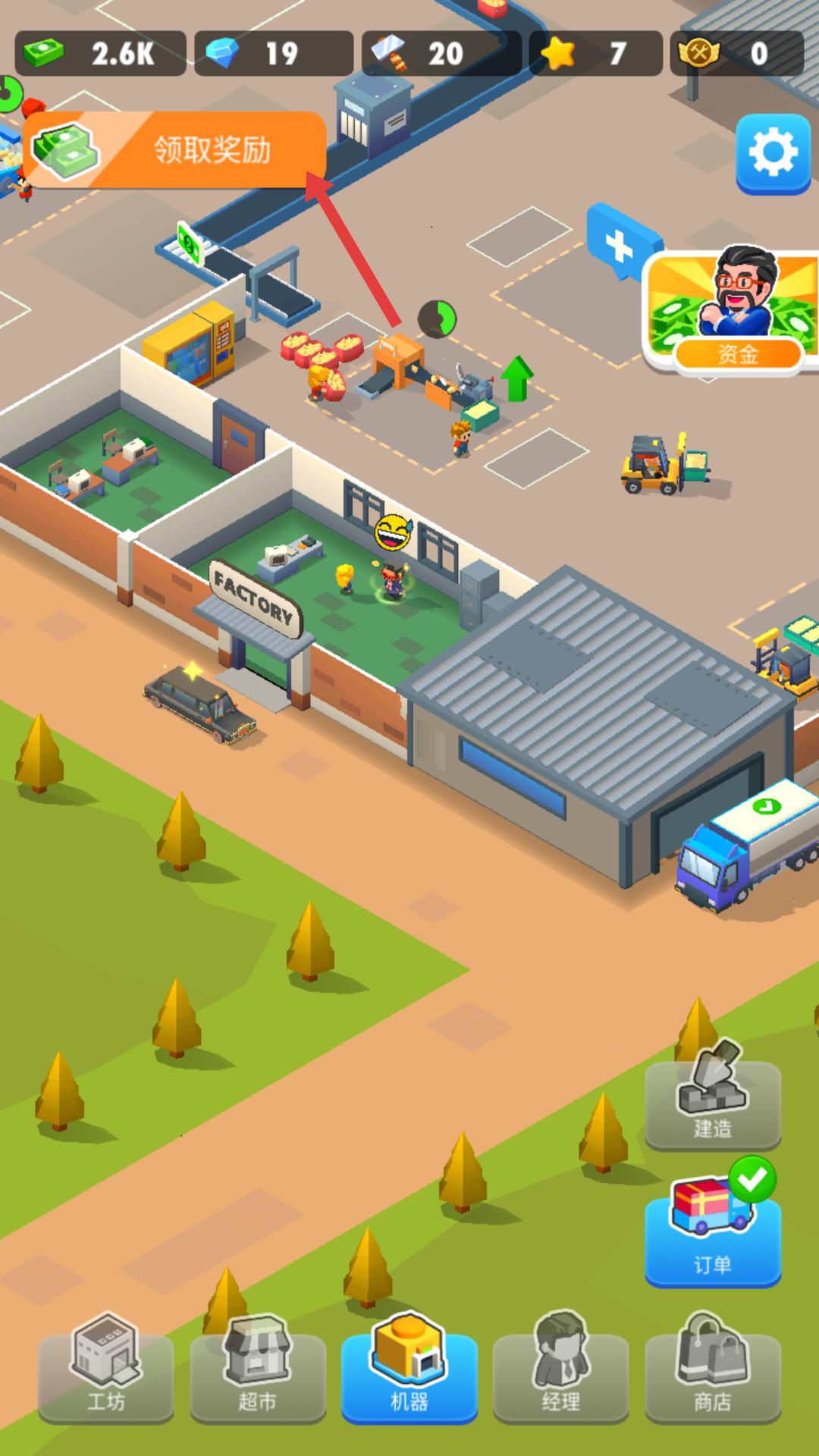 3、完成機器升級等操作后,點擊領取獎勵按鈕,可獲取相應的金幣獎勵,積累資金用于后續工廠建設與機器升級。