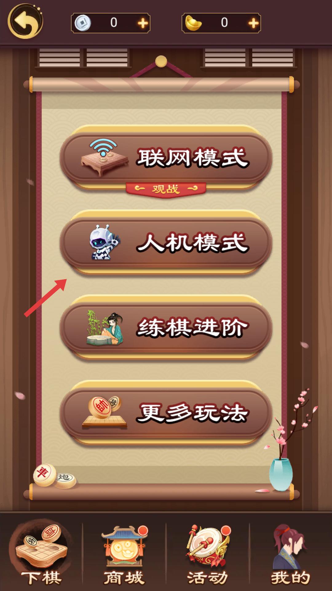 2、進入模式選擇界面,有聯網模式,人機模式等多種模式可選,挑選心儀模式,準備展開象棋對局。