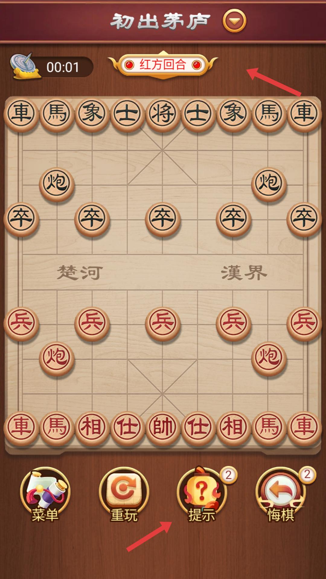 4、進入象棋棋盤界面,能看到楚河漢界分隔的棋盤與雙方棋子,在紅方回合,可移動棋子,助力棋局推進。