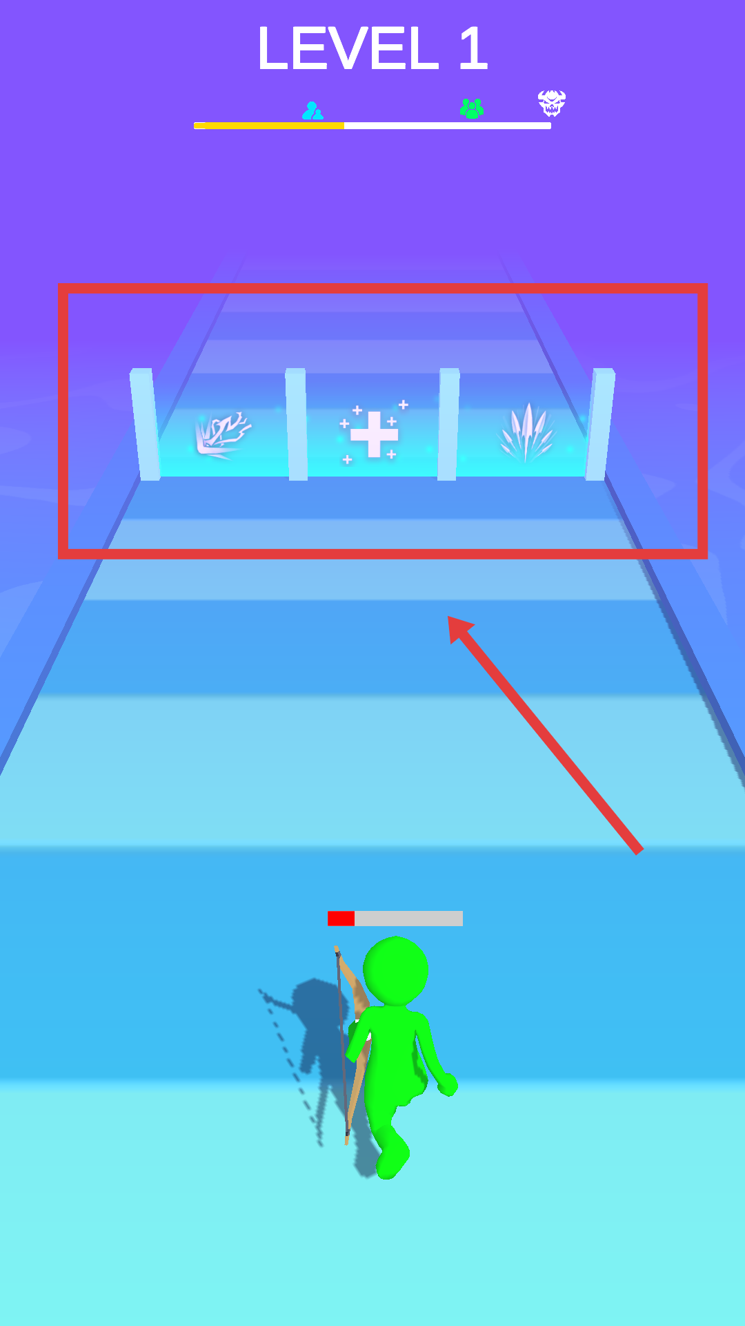 1、賽道沿途隨機刷新不同屬性的弓箭道具,包括穿透箭、火焰箭等特殊效果,拾取后立即改變攻擊模式,為跑酷過程增加策略性收集玩法。