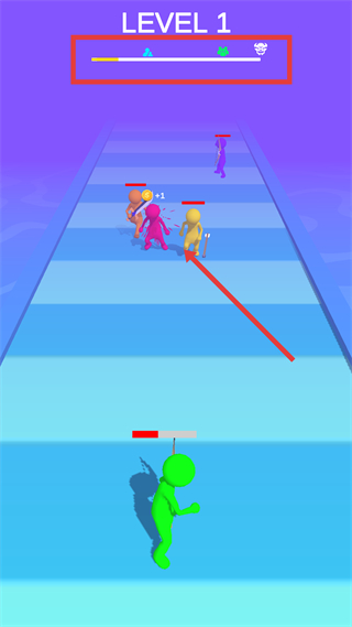 2、游戲中操控角色向前奔跑,遇到敵人時利用手中武器攻擊,擊敗敵人可獲得金幣,同時注意上方進度條,了解關卡推進情況。